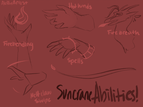 When dueling Suncranes have a very specific code you have to follow. You either use short dueling fire blades, or one large fire broadsword. These swords are made from their fire bending, since they're immune to each other's fire they don't get very hurt, so its more of a battle of stamina and tenacity. Although these battles go awry when a Soul Fire is involved. You see, you can't tell a soul fire at first glance, but once they breathe fire you know you're toast, literally. Once you're in a duel to preserve your honor you cannot back out. If you do resign, you're outcast. Though this happens very little, due to the extremely small amount of Soul Fires and often don't need to duel from other's fear.